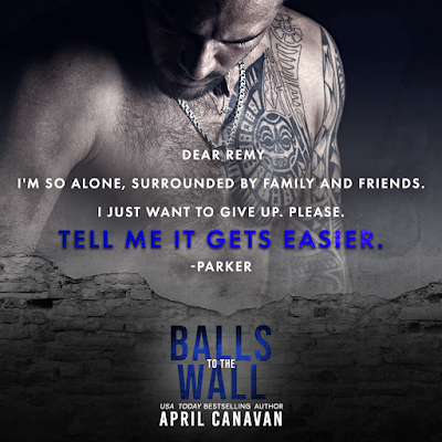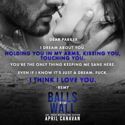 April Canavan is a new to me author, but when I read the blurb for Balls to the Wall I knew I wanted to read it. It was full of angst and push and pull between the two main characters that drew me right in. Remy and Parker had a connection, but Remy pushed her away and hurt her. Now Parker is a widow and he promised to watch out for her, but how does he deny the pull he still feels for her?