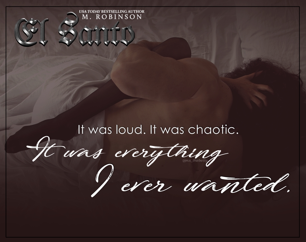 M. Robinson is hands-down one of my all-time favorite authors. She does not just give us stories, but epic journeys that slay her readers with all the feels. I know, I know how that sounds, but she gives us real, honest and raw stories that grip you and never let you go. Trust me, she is a must read author. I have loved every single one of her books I have read to-date. El Santo was no exception. I felt like my heart was going to explode at any minute with the emotional roller coaster of a journey she gave us.