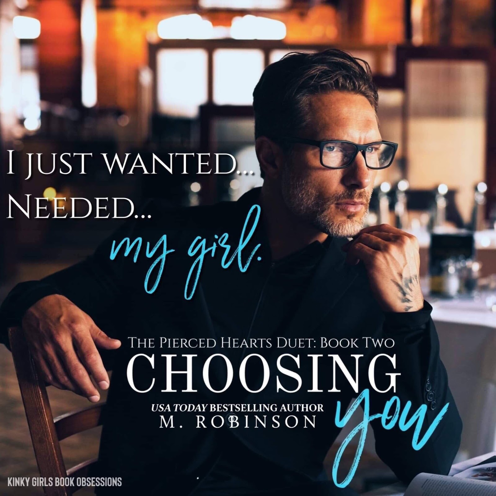My heart broke so much. This book is very emotional and full of surprises. I was consumed by this story. All I can say is when you read this duet as a whole, go in with an open mind and heart. One’s journey is not always a simple one. Choosing You by M. Robinson was a heartbreaking story of love, second chances and hope.