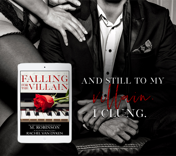 Falling for the Villain by M. Robinson and Rachel Van Dyken was a captivating and very dark read. I devoured this story in one sitting and though I do not normally talk about triggers or how dark a story is, this is one is very dark story. It will test your limits and your comfort level.
