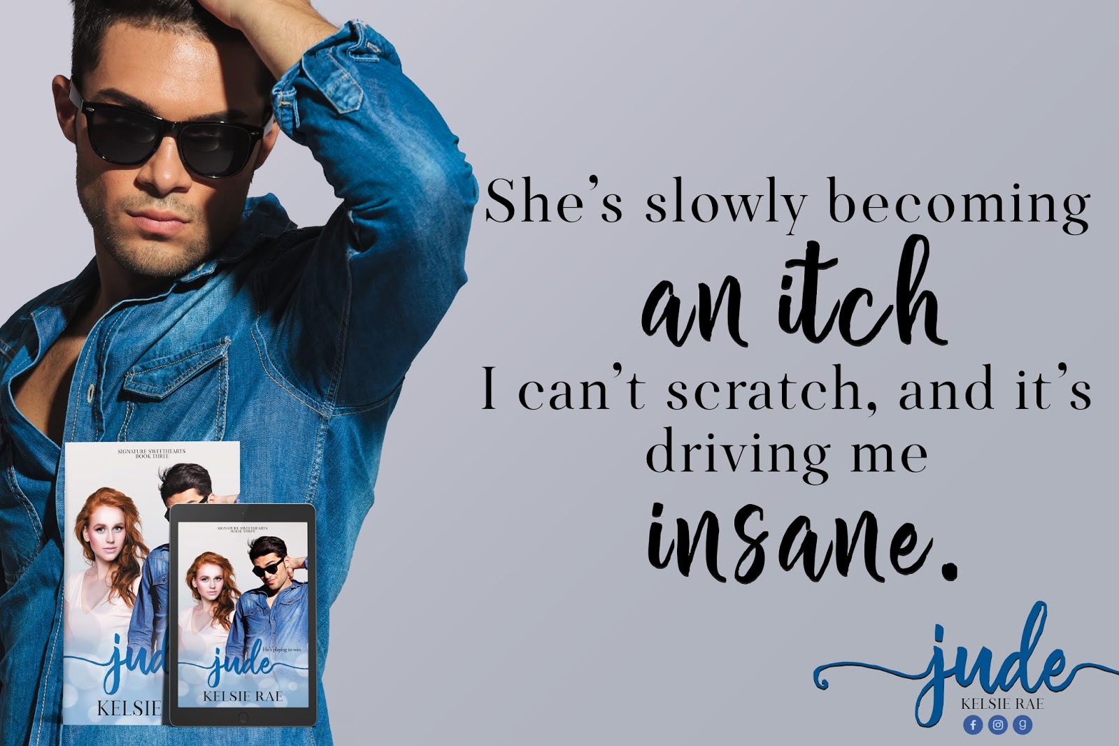 I really enjoyed reading Jude by Kelsie Rae. It was such a sweet and charming story. And I loved watching Quincy come out of her shell and shine. Jude was patient and caring and just what she needed. Though this is the third book in a series, each can be read as a standalone, as they are about interconnected couples, however, I do highly recommend each and every one of them. I love the characters Kelsie Rae gives us!