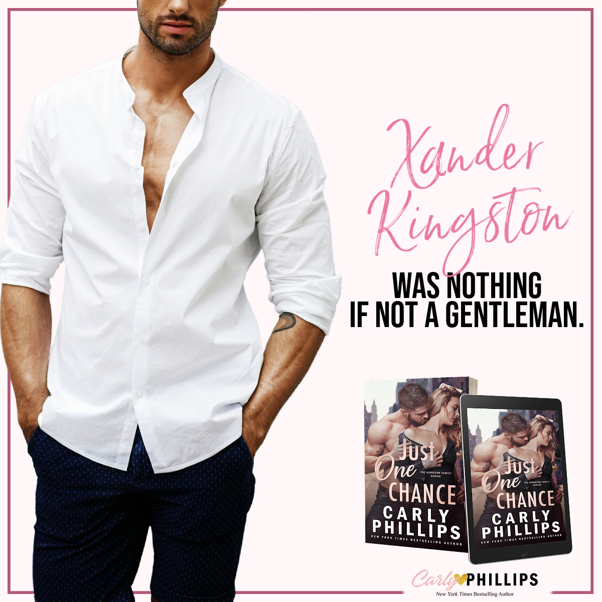 Xander is strong, caring, and protective. Sasha is very driven and determined, but has she truly ever chased what she wanted? Maybe it’s time she does. When Sasha is threatened, all of Xander’s protective instincts come out. Is this their second chance or the final goodbye? I loved Just Once Chance by Carly Phillips. It was sweet, a bit angsty and had so many feels.