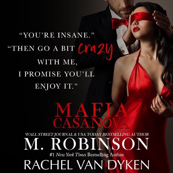 I am a huge fan of both M. Robinson and Rachel Van Dyken as individual authors, so when I heard they were writing a novel together, I was beyond excited. And let me tell you I was not disappointed! Mafia Casanova is a story that is full of the feels, emotional and angst. I was captivated from the beginning to end. I literally devoured this story.