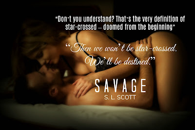Except for the prologue, I read Savage by S.L. Scott in one sitting. It was an all-consuming and amazing read. I loved every minute of it. Even as my heart hurt, I could not put it down. This book was so romantic in so many ways, but suspenseful at every turn as well.