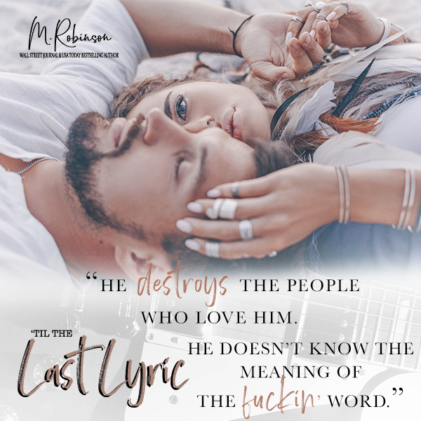 At times I love M. Robinson and at times I curse her. If you have read her before you would understand and if you have not, trust me, you want too! I love her writing, even if it breaks me every time. It’s the type of writer she is and I devour anything she writes. In Till the Last Lyric, we get a story that will captivate you from start to finish that was heartbreaking and full of angst. This is the conclusion of Journey and Cash’s story and it will gut you.