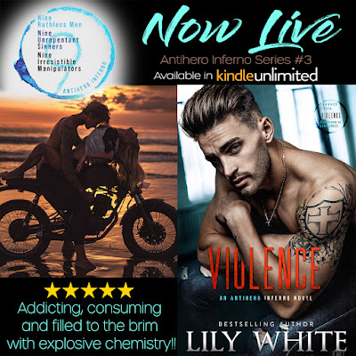 I am not even sure where to begin. The Antihero series by Lily White has kept me captivated, at the edge of my seat and waiting to see what is coming next. In Violence we are taken deeper into their world with Ezra, Emily and Damon. The twins seem to have a deep connection with Emily, who is promised to another. Though Emily loves them both, only one owns her heart. Their journey is heartbreaking, emotional and with so many feels. We get some answers but there are so many more questions. This one tugged at my heart in so many ways. I am so excited, and a bit scared, if I am honest, on what is to come next!